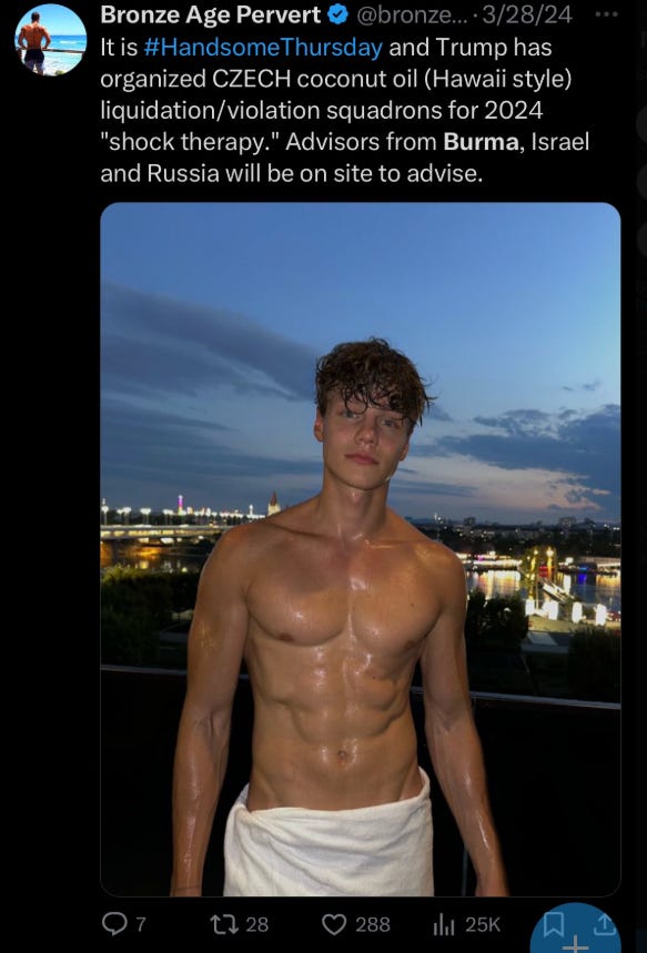 I don’t think it’s a stretch to say that this has political consequences. A lot of the pushback against the progressive element of popular culture from the populist right has focused on traditional standards of beauty, both in people and in the built world. Online Dissent Right figures online like BAP have sought to turn female-centred universalism of Body Positivity on its head by promoting propagandistic and homoerotic imagery of glistening half-naked male athletes alongside right-wing political takes