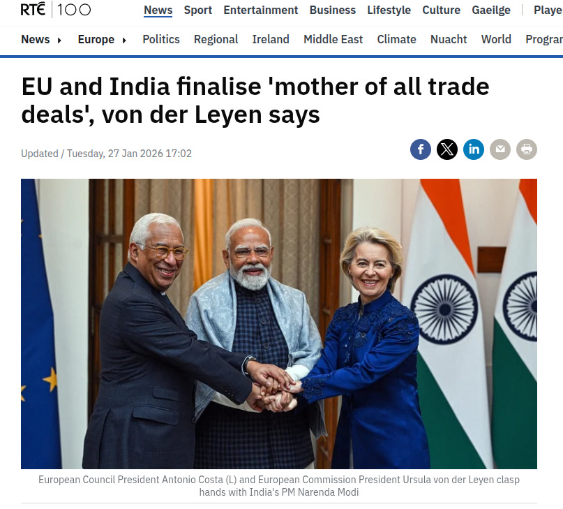 In January Ursula von der Leyen proudly announced the conclusion of an economic deal between the EU and India, what she described as the “mother of all deals”. One aspect of the deal was that it will facilitate the movement of labour from India to the EU, thereby promising the prospect of a new wave of immigration westwards. In other words the pictures that issued from this meeting are of Ursula gleefully announcing more of the kind of policy that voters across Europe like the least, feel least capable of dealing with, and which is causing basic societal consensus to dissolve like a sandcastle under a frothy tide.