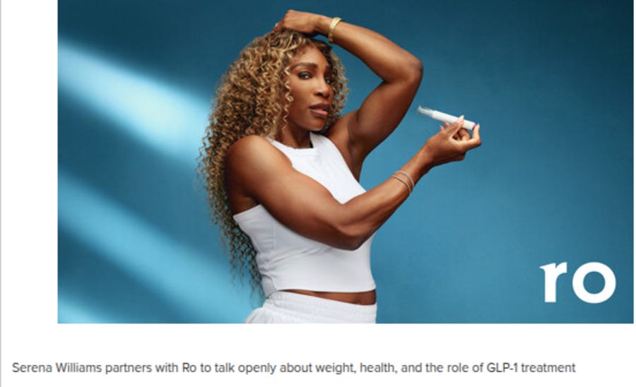 Being a storied athletic champion, Serena Williams must logically have more willpower in her little finger than you do in your entire body but she needed a GLP-1 to lose weight, or at least she felt that the effort was sufficient that that was a worthwhile way of doing it. (She is paid to promote them but also seems to have used them in her personal life.)