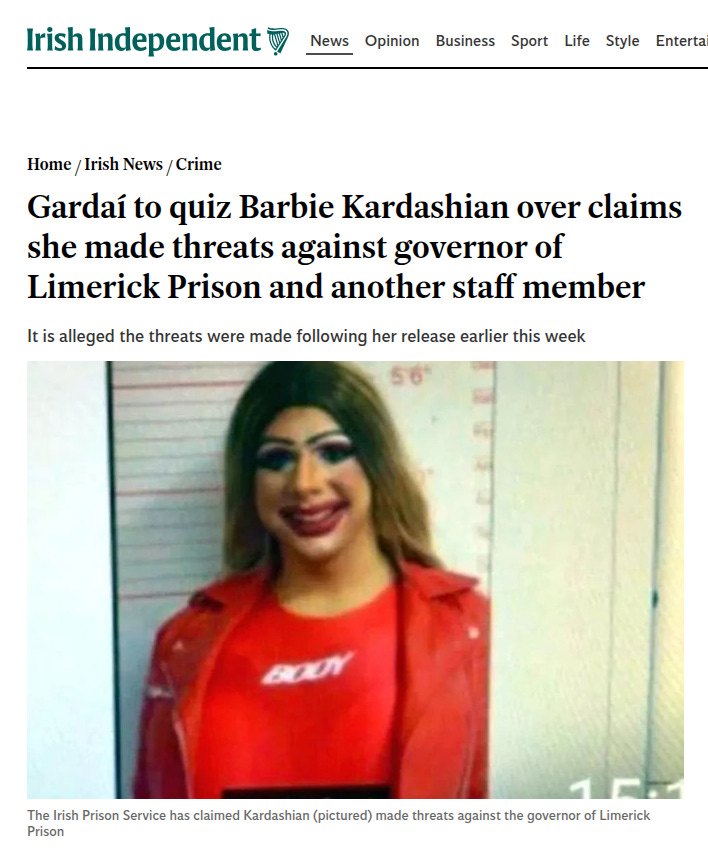 Barbie Kardashian was released from prison at the start of October, and a reporter from Gript got an interview on the steps of the jail, an incredible scoop that prompted a couple of days of headlines in Ireland.