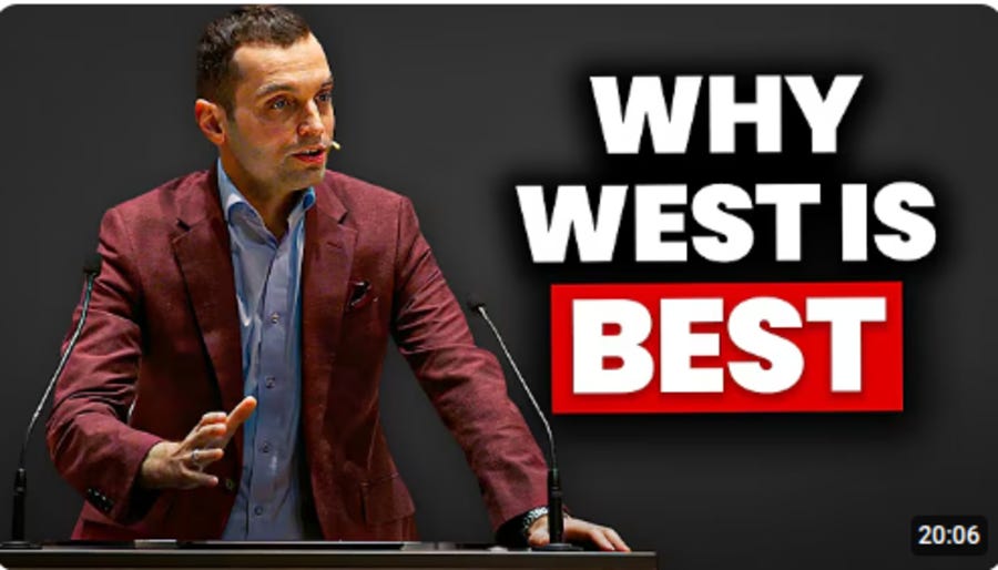 We see it constantly in mass media from books (Charlie Kirk’s “How to Beat Woke and Save the West”, Liz Truss “Ten Years to Save the West”, Douglas Murray’s “The War on The West”) to Youtube videos (some examples below). At the bottom of the barrell you have various statue-faced posters on Facebook and Twitter with names like Revenge of the West or Save the West who exist to monetise pornographically demoralising short-form video content on the collapse of European identity.